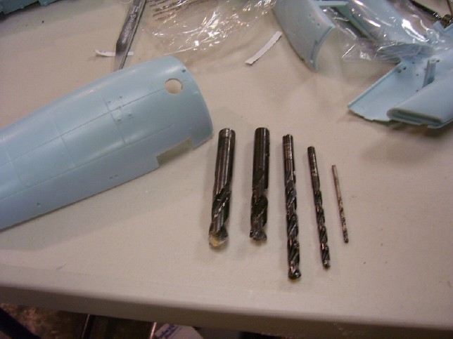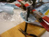 are the bits I used to drill the hole. Once this process was complete, a hole had to be opened through the arboretum and arboretum ceiling for the rod to pass through, and attach a brace to the forward end of the shuttle bay assembly. I made the whole through the arboretum first, but I got a little over-zealous and made too big of an opening. This won't really be a problem, though, since I'm not really planning on showing this area off. The opening has to be a little bigger than the armature post, to avoid interfering with the brace I made below, but I still overdid it!