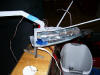 Lighting the Engineering Section 09 August 2006 This time around, I have made some major progress in the actual physical construction of this model. It is starting to look less and less like a box of parts and more and more like a model, which is always encouraging! In this installment, I'm going to discuss the assembly and lighting of the engineering section of the ship (or the secondary hull, if you prefer!). The first step was to determine the location of the power jack. I selected a spot on the bottom of the ship, just aft of where I drilled the hole for the armature. I chose this location because this way I can potentially support and power the model from the same stand with no wires showing. To power the lights in the model, I am using a 2500 mA 9V power supply with a size "M" plug.