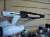 of the outboard nacelle half. The total LED's I used in each nacelle comes to 5: one for the spotlight, one for the top crystal, 2 for the grill, and one for the strobe at the aft end. I am pleased that the blue glow looks as good as it does, but I did run into some difficulty when I masked the outside of the grills for painting. I mis-aligned the tape, and when I pulled the tape off to re-position it, it took some of the black paint on the raised areas with it. Argh! I've decided to leave it be for now, and touch up that area by hand after the rest of the model is painted. Andy Rucker