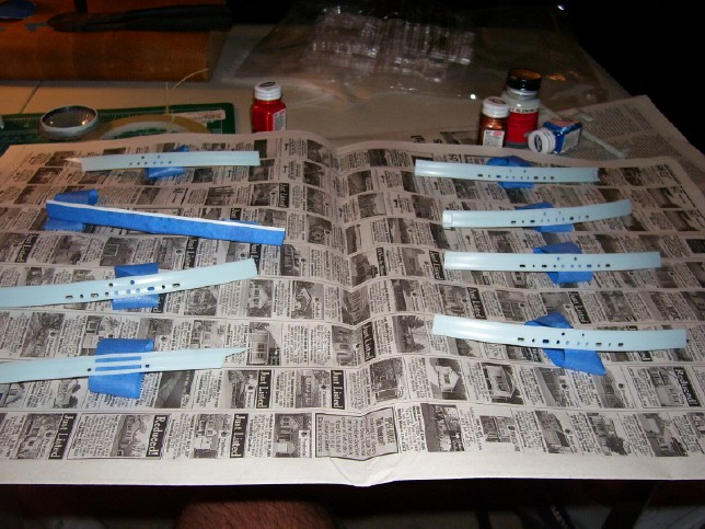 are the pieces laid out for painting. You can see the test piece on the